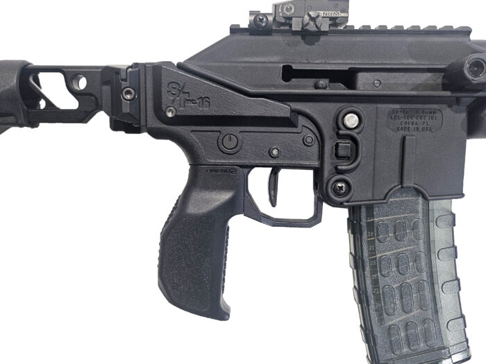 Well, look at that! It’s a FCG housing for your Keltec SU16 (rifle) or PLR16 (pistol) that has a three slot pic rail, uses AR FCG’s and is super easy to install (remove the pins, remove the old body, put the new one in and pop the pins back in place). Available as a complete FCG with mil-spec trigger group AND an Amend2 Grip, or stripped with no grip or trigger components. The choice is yours, but no matter which one you choose, your Keltec is going to love you for it.